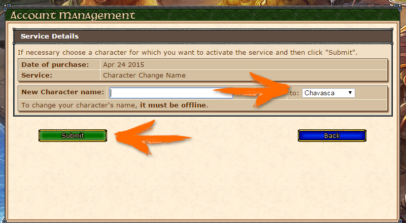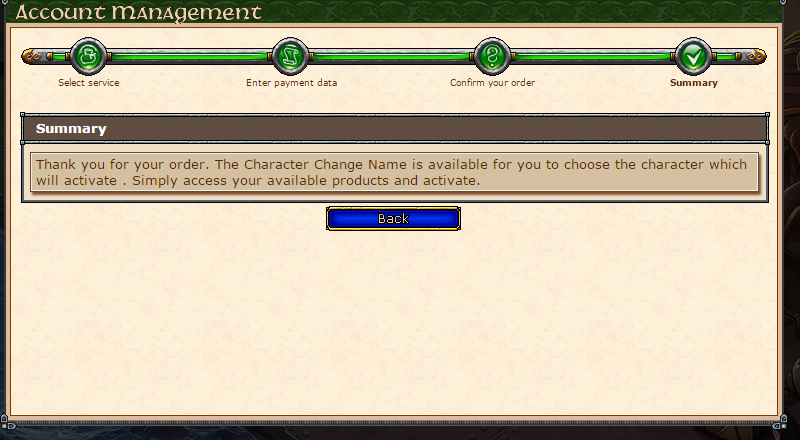 - Account Name Change - Change the name of your account, the login you use to enter the game and the site.